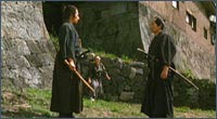 The samurai movie, like the Western, is a magnificant genre that’s not as widely appreciated as it should be. The plot is usually predicable, with romantic and didactic elements, law and lawlessness, locals and drifters, all mixed up in a sort of tense unfolding that leads to a few spectacular shoot-outs or battle scenes. But the variations are endless, and as such, these “forms” might well MORE