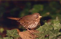 At this point, feeling that I'd outworn my welcome in the Lunds parking lot, I pulled out and found a meter a block up the street. The afternoon was so warm that I left my jacket in the car and walked with new-found freedom and ease to a used book store a block and a half away. In the bargain bin outside the shop my eye caught sight of a book with the clever title Medieval American Art . An apparent contradiction, the book was in fact a large and handsome exposé of pre-Columbian art. At the price of $2, how could I resist? On the other side of the cart I found a novel by an Argentine fellow named Humberto Costantini, enthusiastically endorsed on the back cover by Julio Cotrázar. Worth a dollar? Who knows, it might change my life! Inside the shop I found the magazine I was looking for, and also the most recent issue of RainTaxi. I snagged both magazines, made my other two purchases, and returned to the car. The Uptown neighborhood is filled with young people who would not be impressed if you told them you remember when THAT corner was the location of a dismal Save Mart, or when the building across the street, now the home of a Gap, was the site of a store called Mr. Fashion, where you sometimes purchased your Levis. Nor would they take interest if they happened to catch a wiff of that CD of Stan Getz and Chet Baker (Stockholm, 1984) blaring from your CD player. And why should we care? After all, experience is the reward for having lived, and no one is as cool as we are, except, perhaps, Alfred E. Newman or Meyer Baba. (This is the message of the Buddha to us all.) Having enjoyed a small part of the sunny afternoon, and the expansive, leisurely frame of mind that invariably develops during even a few minutes spent on the sidewalk in front of a cart of very inexpensive books, I returned to my 1992 Toyota Tercel (42 mpg) and made my way back around the lakes and up the parkway to my house. I was pleased to see a new Daedalus catalogue waiting for me in the mail when I reached home. After availing myself of a post-Easter hard-boiled egg from the refrigerator, (dyed deep red in the Greek style), I wandered over to the sliding doors leading out onto the deck, where an entire world had been slowly returning to life, day after day, before my eyes. The recent rains had obliterated the final layer of late-winter snow-dirt, and it was clear that the earth was finally breathing again. Looking out through the glass, I immediately spotted a fox sparrow vigorously raking through the leaves at the base of the spruce tree with his feet, then bending forward to nab whatever he happened to unearth with his beak.