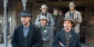 3:10 to Yuma is a remake of a western made in 1957, the year that also saw the release of Samuel Fuller's Forty Guns, Anthony Mann's The Tin Star, and forty-seven other Westerns. The current remake is a fascinating character-study of two flawed men thrown together by circumstances, one of them a highly-skilled criminal and the other a hapless dirt-farmer. One of them has no conscience, the other perhaps too much. In any case, in the hands of Russell Crowe and Christopher Bale their interplay takes on a degree of psychological interest that has little to do with the Wild West. Yet 3:10 to Yuma is unquestionably a Western, and there is plenty of shooting going on, not to mention the folks getting hurled into ravines, immolated in a stage coach, or stabbed to death with a dining-room fork. Scene after scene the film remains gripping, and not all of it is violent.