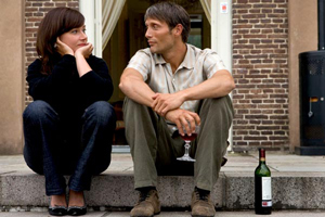 After the Wedding focuses on a few days in the life of a middle-aged Danish man who operates an orphanage in India. All the kids love him and they're a little upset when he informs them that he has to go back to Denmark to finalize a grant that the orphanage has received. Mads Mikkelsen, whom some viewers may remember as the bad guy with the suitcase of African money at the beginning of Casino Royale , is less malevolent but no less enigmatic here as the returning Dane. The gentleman who's planning to award the grant, played by Rolf Lassgård, is a flamboyant creature, a self-made man who's used to getting his own way and breaking the rules on occasion to do it. The two don't really like each other. Mads is reserved—he'd rather be back in India. Rolf is more than a little overbearing. Well, he's the one with all the money.