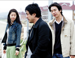 Orquesta Tipica: Tango or Death The tango group Orquesta Tipica Fernandez Fierro is a twelve-man street band specializing in traditional tango music that has allegedly revitalized the genre among the youth of Argentina during the last decade. This documentary purports to chronicle its rise. The most interesting scene in the film takes place early on, when one member of the street audience watching a show in a suburb south of Buenos Aires confronts a cop and defends the right of these musicians to perform in the street. The man goes on to decry the pernicious influence of tedious Cumbia rhythms on the minds of Argentina's youth. For anyone hoping for a genuine analysis of the relationships between musical styles and cultural consciousness, that conversation is about it. Most of the film is a sort of grainy, home-made Hard Days Night , with the band getting lost in various European cities, moving pianos up and down city streets, mugging in front of the cameras, and dozing in the homes of generous sponsors. It's fun, but it gets old. And if the truth be told, the sounds of tango music itself also grow tiresome when divorced from the dancing (there is no dancing in the film) and the nightclubs and the history. As is often is the case with festival releases, we are thankful for having been exposed to a world we hardly knew, but mildly frustrated by the shortcomings of those who could so easily have shown us a more complete picture. Woman on the Beach The brochure description of this film exposes the dangers of promotional hyperbole and perhaps explains why some viewers who get caught up in festival frenzy are reluctant to attend Film Society offerings on a regular basis. Woman on the Beach was billed as “a chance to discover Korean cinema,” which may be true. But if it is in any way representative, then the Koreans have a long way to go before they enter the art-house mainstream. Similarly, director Sang-soo Hong is described in the brochure as “one of the most exciting figures in the Asian New Wave.” Yet the film is the opposite of exciting. We follow a few days in the lives of a small group of characters at a largely-deserted beach resort. They're all self-centered, mildly depressed, and looking for a good time. The one exception is an erstwhile “boyfriend” who vanishes from the scene fairly early on in the proceeding